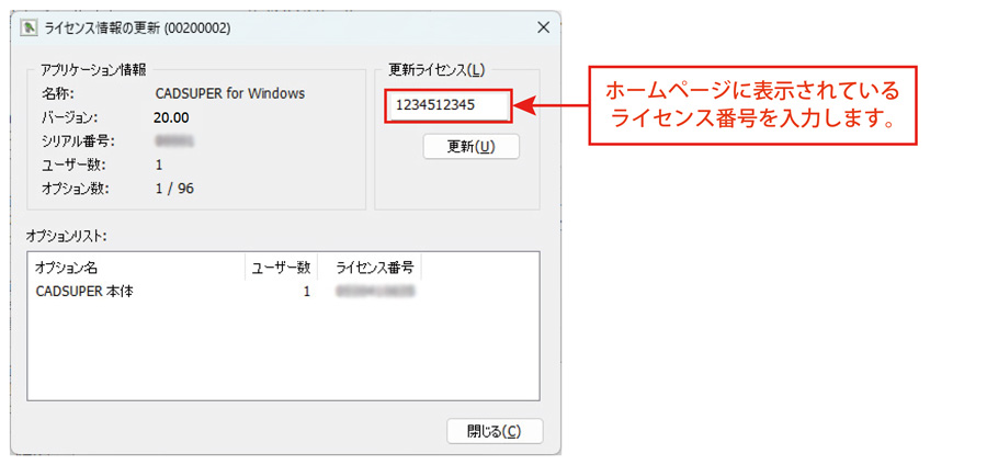 ホームページに表示されているライセンス番号を入力してください。