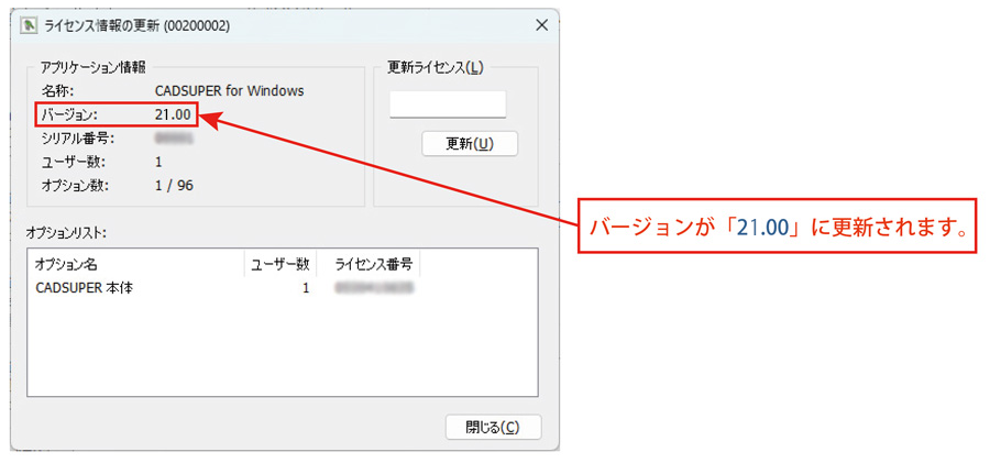 以下の手順は、CADSUPER 2026セットアップ後のバージョンアップライセンス登録手順の説明になります。