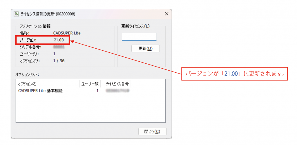 以下の手順は、CADSUPER Lite 2026セットアップ後のバージョンアップライセンス登録手順の説明になります。