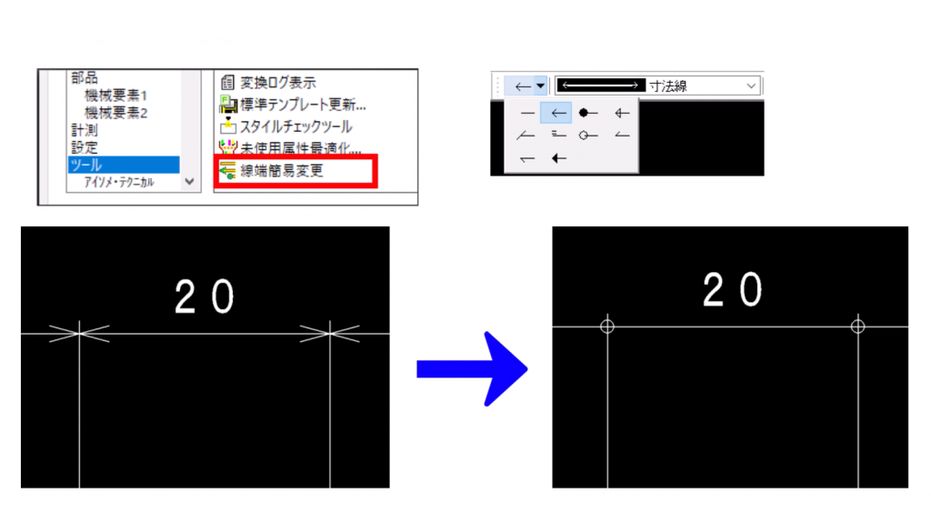 寸法の線端変更に関する操作動画