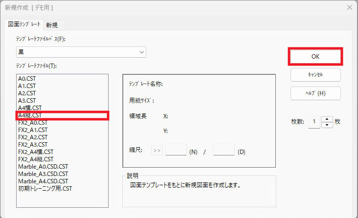 ③出力するテンプレートを選択し、「OK」をクリックします。