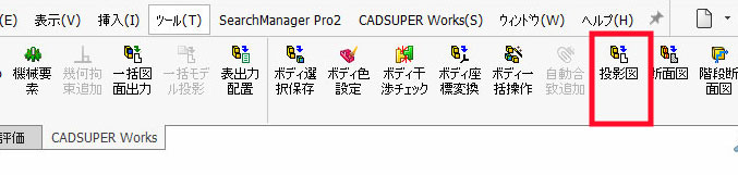 ① 「CADSUPERWorks」タブの「投影図」を実行します。