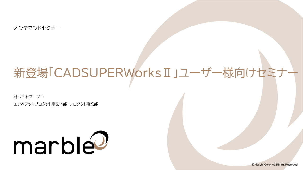新登場「CADSUPERWorksⅡ」ユーザー様向け先行セミナー オンデマンドセミナー動画 2026.04.02 2026.03.09 ユーザー様向けに「CADSUPERWorksII」の先行セミナーです。 本セミナーでは、「CADSUPERWorksII」に移行することで得られるメリットや改善点について、詳しくご紹介いたします。新しく利用できる機能や利便性向上のポイントをわかりやすく解説する内容となっておりますので、ぜひご視聴ください。 myANDOR会員ログインメールアドレスパスワード上に表示された文字を入力してください。 ログイン状態を保存する パスワードを忘れた場合 パスワードリセットはじめての方はこちら 新規会員登録《 よくあるお問合せ 》・myANDOR会員ログインに保守契約ID「cadsuper」とパスワードを入力したがログインができない。・「仮パスワード」を入力したが、ログインできない。・【本登録のお願い】メールが届かない。 お申込み JavaScriptがオフです。オンにしてアクセスして頂くと、フォームが表示されます。
